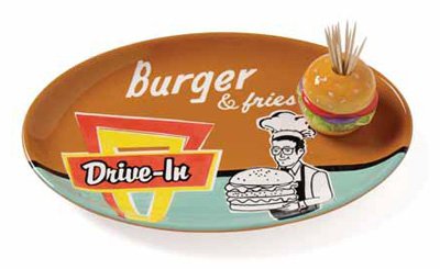 Reviews Tables and Burgers To Go Oval Platter and Toothpick Holder Table Top Shop For Home D?cor Reviews Burgers To Go Appetizer Tray with Hamburger Toothpick HolderbrbrAppetizers served on this converstion-starting tray with tooth pick holder make entertaining a delight. Inspired by California's very own In-N-Out Burger, "Burgers to Go" is the ultimate backyard dinnerware entertainment. brbrHand Painted ceramic, dishwasher and microwave safe. Plate measures 12W x 8 Provided to you Save 10-50% Off or More Online Home D?cor Accessories